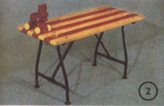 kostra kovová, deska pestré dřevo, rozměr stolní desky 43 x 100 cm, výška stolu 52 cm.