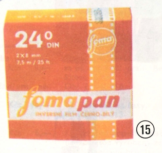 černobílý film 2x8 mm, 7,5 m délky, 17° Din, 219 Din, 24° Din.