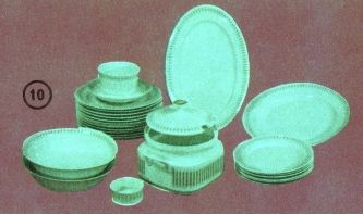z jakostního porcelánu. Zdobená bohatým dekorem. V barvě šedovínové. Pro 6 osob.