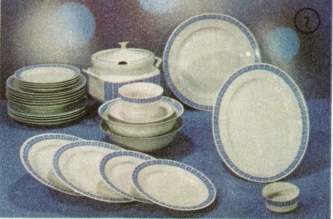z jakostního porcelánu. Zdobená bohatým dekorem. V barvě modré. Pro 6 osob. celý popis
