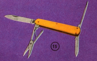 Velká a malá čepel, pilníček a nůžtičky z nerez oceli, střenka z umělé perleti. Pouzdro na kapesní nože