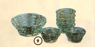 z lisovaného skla. Velká mísa o průměru 21,5 cm, miska o průměru 12 cm.