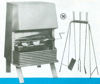 líbivý a účelný výrobek do obývacích koutů a chat, pro strávení příjemných chvilek. Na krbu je možno grilovat. Je zhotoven z ocelového plechu černě smaltovaného. Ohniště je vyloženo šamotovými deskami o síle 20 mm. Půdorys 560x570 mm, výška 850 mm. Kouřové hrdlo průměru 150 mm. Výhřevnost 2 500 —3 000 kcal za hod. K příslušenství patří grilovací jehla a stojánek s nářadím.