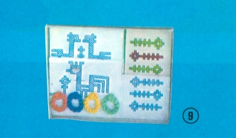 látka s předlohou na křížkový steh, 4 bavlnky a náprstek s jehlou. celý popis