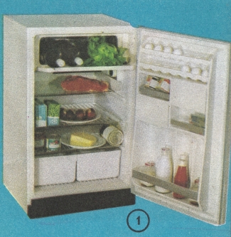 pro domácnost o obsahu 150 I s využitím dveřní výplně. Plynulá regulace teploty pomocí termostatu. Chladnička je opatřena automatickým vnitřním osvětlením. Magnetické těsnění dveří po celém obvodu. Napětí 220 V, 50 Hz, příkon 120 W, příkon vnitř, osvětí. 15 W. Rozměr: výška 900 mm, šířka 550 mm, hloubka 600 mm. Záruka na aparaturu 5 roků na ostatní části 1 rok. Váha 42 kg. Dovoz.