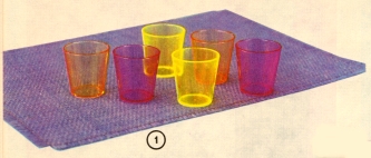souprava 6 kalíšků — 2 červené, 2 žluté 2 modré. celý popis