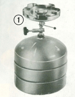 jednohořákový turistický varič na propan-butan s pohyblivým přívodem. Předností tohoto vařiče je, že pomocí rozvodjky mohou být na jednu lahev zapojeny 2 vařiče, nebo varič a lampa, popřípadě jiný spotřebič. Je vyroben z klasických materiálů mosaz a nerez. Doba hoření při max. výkonu na 1kg lahvi je cca 10 hod. Záruka 12 měsíců. vařič 210,-, láhev PB 2kg 105,- Kčs.
