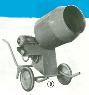 a maltu, obsah 50 I. Je určena pro stavebnictví, zejména pro stavbu rodinných domků atd. Je lehko přemístitelná a Je řešena tak, aby při malé fyzické námaze šel obsah vyprázdnit do stavebního kolečka. Náhon bubnu je proveden pomoci Šnekového soukolí, Čímž je odstraněna veškerá poruchovost. Soukolí je uloženo v olej. lázni chráněné proti prachu a vodě. El. motor 0,8 kW je napojen na hlavní hřídel pomocí pružné spojky.