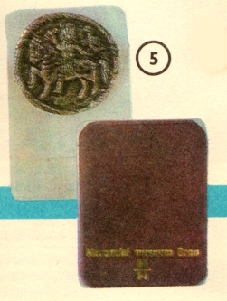 na delším řetízku s motivem sokolníka. Je to reprodukce velkomoravského stříbrného šperku z 9. století. celý popis