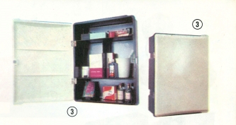 z plastické hmoty do koupelny pro kosmetické výrobky, domácí lékárničku apod. Rozměry: 40x30x12 cm.