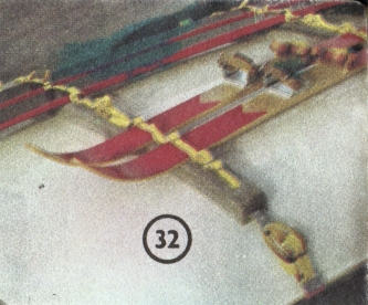 Řemenový popruh se 4 upínacími přezkami je uložen do dvou pásů z plsti. Pro sportovce-automobilisty.