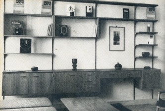Konstrukčně zajímavě řešená stěna BYGGA. Jednotlivé skříňky a police jsou zavěšeny na zeď pomocí úzkých kovových stojek. BYGGA se prodává ve dvou sestavách lišících se počtem dílů. Širší z nich obsahuje i pracovní plochu se zásuvkami. Provedení: světlý dub. Stěna je vhodná pro zařizování menších pokojů (např. pro školáky) a je ji možno doplnit bežně prodávaným čalouněním.