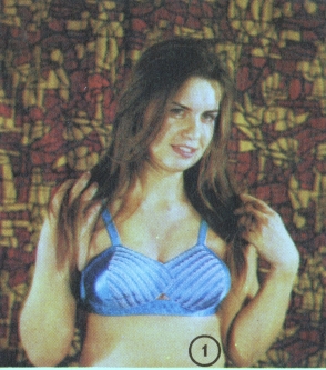 s plátěnou podšívkou, elastická ramínka, bohatě zdobená kraječkou. V barvě světle modré. Vel. 1 celý popis