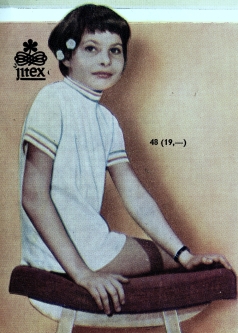 U výstřihu a rukávů je zdobení našitou barevnou dutinkou. Materiál — bavlna.