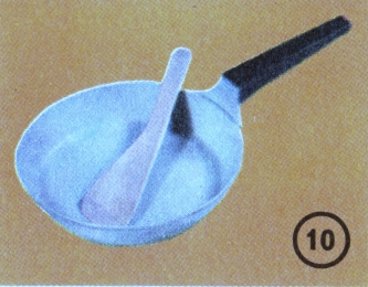 s ochrannou vrstvou PTEF, která zamezuje přilepení a připálení pokrmů. Je možno připravovat pokrmy i bez tuku nebos malým množstvím. Doplňkem pánve je dřevěná obracečka.