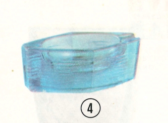 z lisovaného skla. Výška 6 cm, velikost 11 X 6,5 cm celý popis