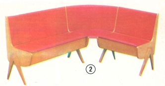 NOVINKA - ve tmavé i světlé dřevině, potah plastik v barvě šedé, červené a bledě modré. Pod sedáky lavice jsou prostory pro uložení hraček, prádla a podobně. Použití pro tento výrobek je mnohostranné, kuchyně, jídelny, obývací pokoje a verandy. Rozměr sedací plochy 128x168 cm, výška 84 cm.