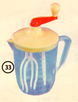 z umělé hmoty. Nádoba šlehače má stupnici pro snadnější měření dávek. Obsah 1 l.
