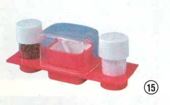 z umělé hmoty pro sůl, pepř a hořčici. Dovoz z NDR. celý popis